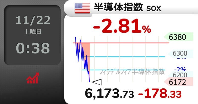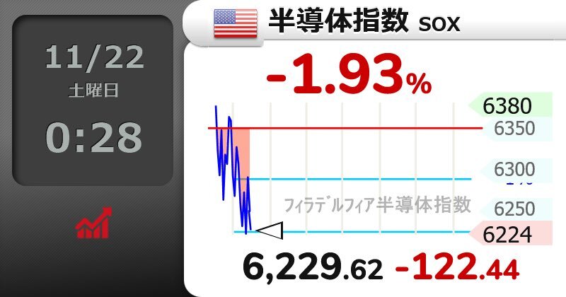 大クラッシュ トランプ関税の時まで戻すとなると、もう半値になる可能性も否定できないが、過度の反応だと見ている。業績は好調。AIの効果は表立ってはないが、確実に進んでいます。本格導入している会社まだ多くないだけ 【🇺🇸半導体指数 SOX】-4.77% 6,352.07 (-317.96) x.sekai-kabuka.com/?a=26381702974…