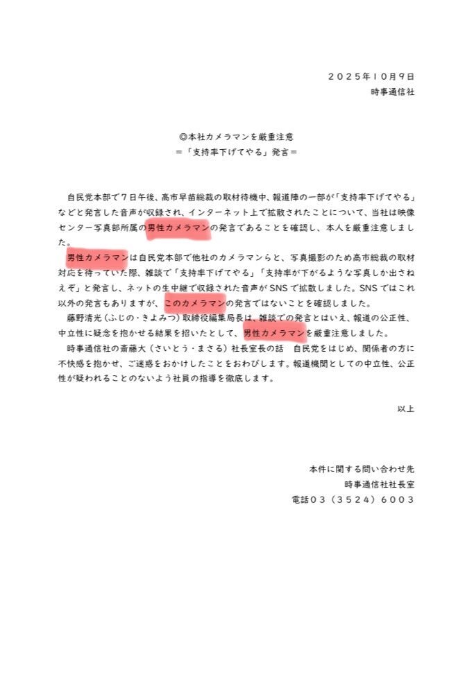 厳重注意だけで済ます時事通信社の記事なんて信用できないな