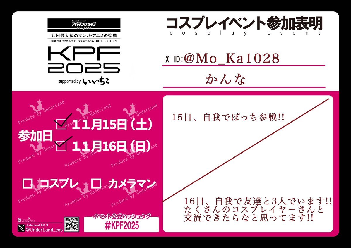 ✨🌟KPFコスイベ参加表明🌟✨ #KPF2025 の参加表明書をどうぞ💁🏼♀️ ⬛️KPF公式サイト ktqpopfes.jp/2025/ 🟨コスプレイベント概要 whatsnew.underlandcos.com/?p=391 🟥前売りチケット t.livepocket.jp/e/eqzz1 🟦当日チケット forms.gle/BiKayKP34bSaQv… #拡散希望💫 pic.x.com/23p25BABhX