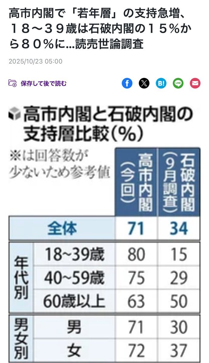 分かりやすいよね。 オールドメディアに騙されているジジババ以外で見れば、高市内閣の支持率は75%~80%だ。 「裏金議員」の起用に反対7割とか言っているが、そりゃあ「裏金議員」と言えばそうなるだろ。 裏金議員なんていないぞ。 note.com/fact_check_1/n… ↑根拠 pic.x.com/qg7dS5HazJ
