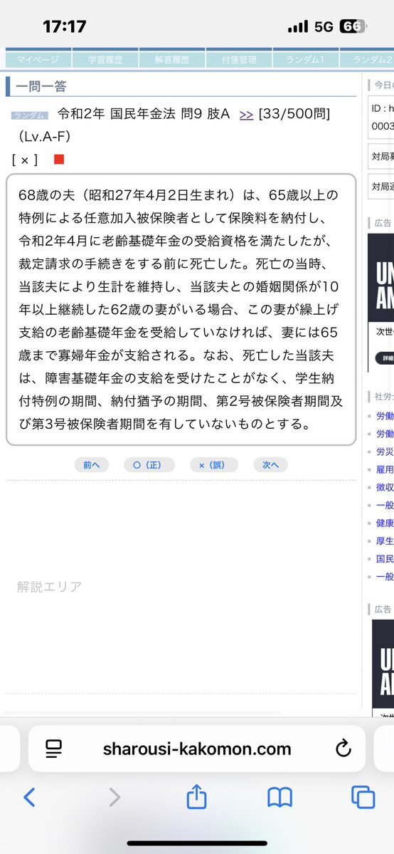 この問題おもしろいな。特例任意加入で受給資格期間満たしたってことは、被保険者期間は必ず10年だし、そうすると特例任意加入を被保険者機関としてカウントできない寡婦年金の支給要件は絶対満たせないことになるのか pic.x.com/asxymu4tcv