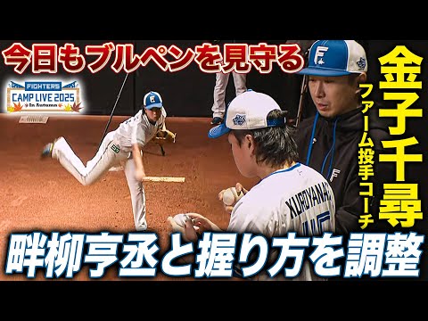 連日投手を見守る金子千尋コーチ!畔柳亨丞とブルペンで握り方相談中<11/5ファイターズ秋季キャンプ2025> youtu.be/7QwEF7b9gdc?si… @YouTubeより スライダー→ナックルスライダー含めて試してそう スプリット→やってる内容は古林睿煬さんと同じくさい、フォーシームとツーシーム両方試してたり