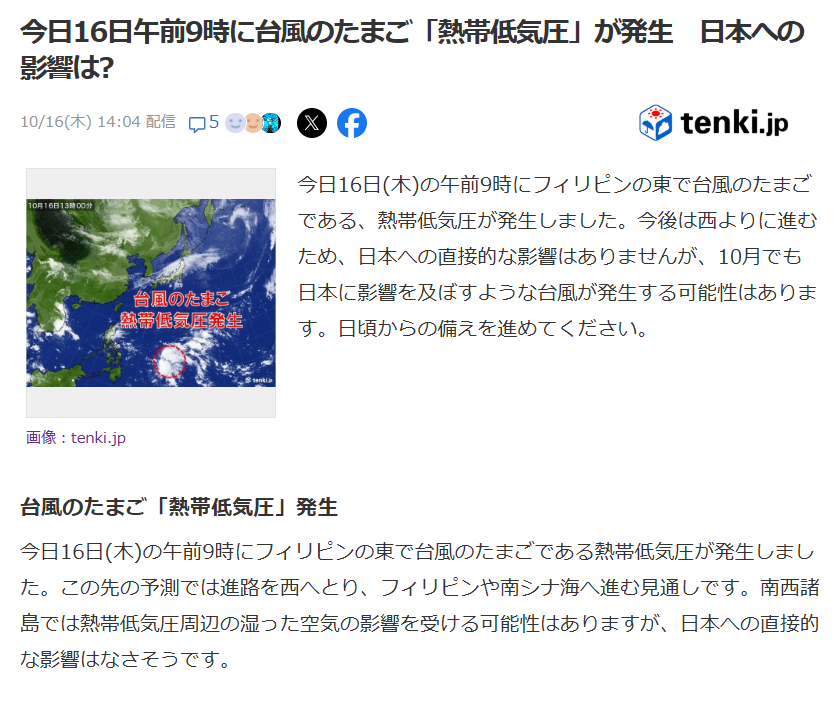 地震に火山噴火に台風に 災害続きだ😫 【台風情報】台風24号(フンシェン)発生、フィリピン東の熱帯低気圧 “台風のたまご” が発達…中心気圧1000hPa、週明けには南シナ海に達する見込み【雨と風のシミュレーション】(チューリップテレビ) - Yahoo!ニュース share.google/9hlNckMDOdmpVT…