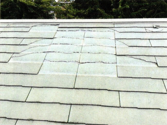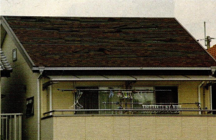 2018年の台風21号では近畿地方で軽い屋根材が被害を受けました。 軽い屋根材の代表格、化粧スレートが風圧で割れて吹き飛び、釘だけが屋根に残っていました(左側画像)。 アスファルトシングルは広範囲にわたって千切れて飛び散ってしまいました(右側画像)。 pic.x.com/j3o3t7GqwH