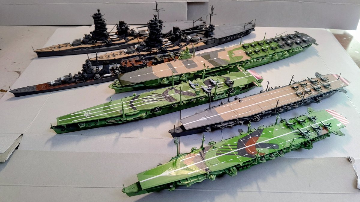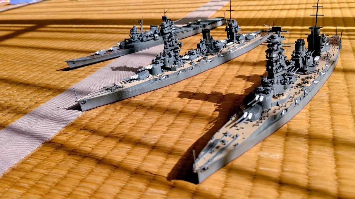レイテ沖海戦 1944年10月25日 日本海軍 模型を並べて スリガオ海峡海戦 西村艦隊 エンガノ岬沖海戦 小沢艦隊 神風特別攻撃隊の出撃 栗田艦隊 米護衛艦空母群との交戦 史上最大の海戦と言われています pic.x.com/jjRZMxXULa
