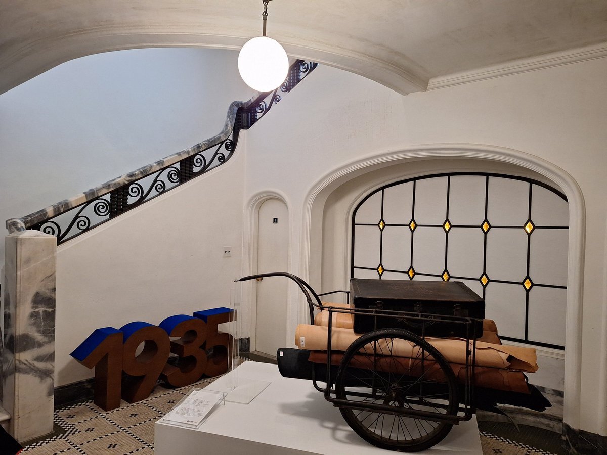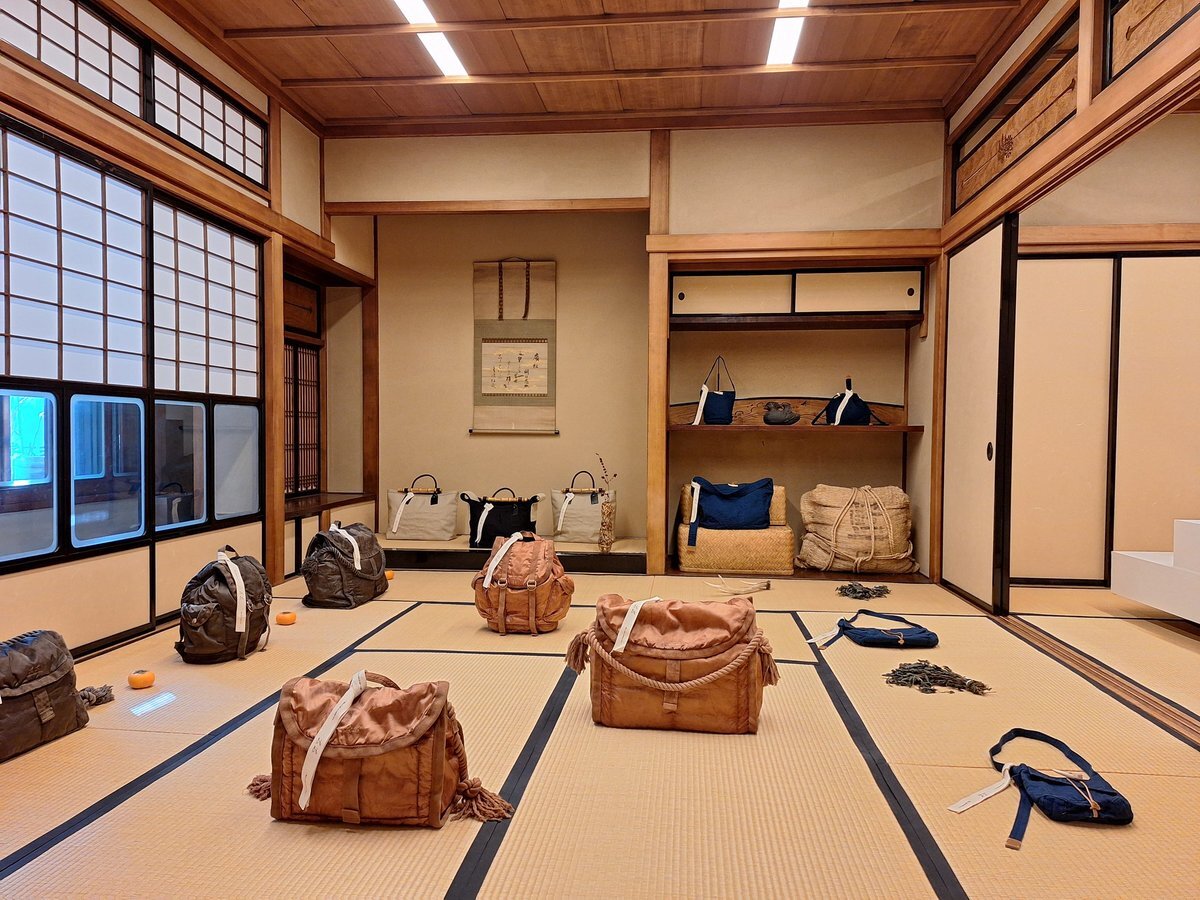KUDAN HOUSEでの吉田カバン90周年展へ。建物観たさもあるが吉田カバンは好きなブランドなのでよい機会と。階段に創業時代のリヤカーに積まれたトランク。手摺素敵。藍染、柿染めのカバンを和室にと空間と展示が素敵にリンク。 pic.x.com/jnk5pKpiuC