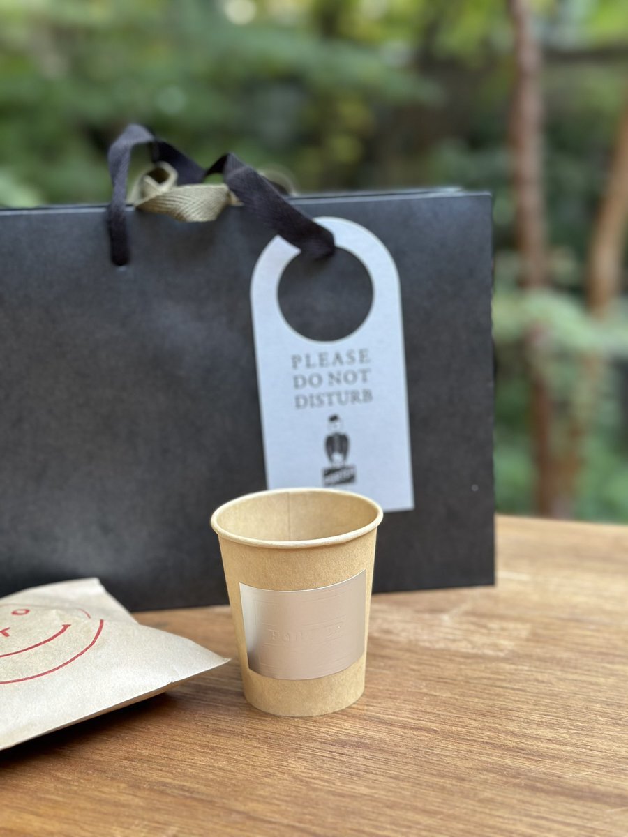 お庭でコーヒーとどら焼の振る舞い。どら焼きはお腹空いてないので持ち帰る。吉田カバンのパッケージかわいい。ポーターのシールも。浅草の亀十のどら焼けっこう大きい。 pic.x.com/muABWCG3LF