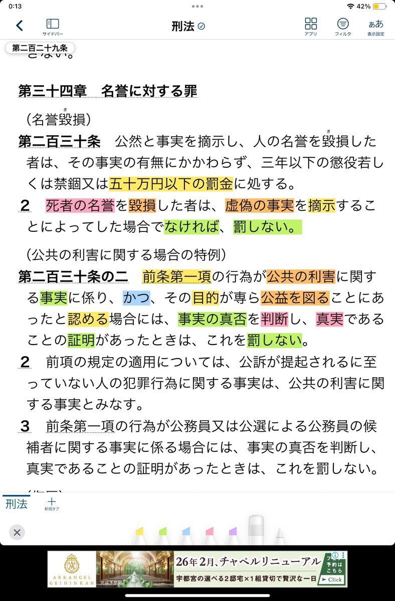 名誉毀損#名誉毀損罪 刑法230条 刑法230条の2 pic.x.com/RdeV34CSia
