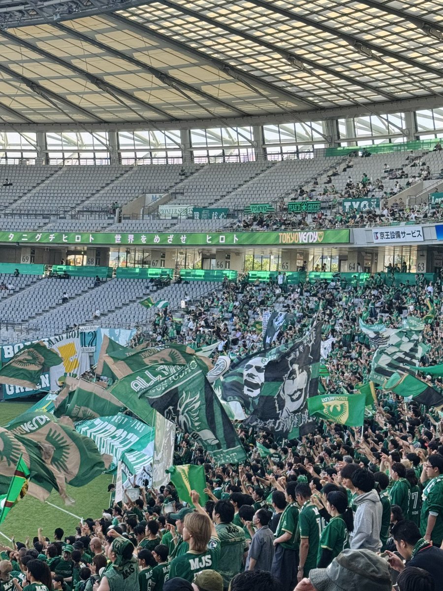 スポーツ観戦記録 2025/6/15 J1、東京ヴェルディ対柏レイソル@味の素スタジアム 2回目のゴール裏。良いシーンもいくつかあったけど、終わってみれば0-3完敗…。失点した時こそ大きな声援を送ってるサポーターさんたちかっこいい。試合前のCOBRA、この日は前半でカモンヴェルディ。カナリアかこいい。 pic.x.com/LJiNGNv4Pd