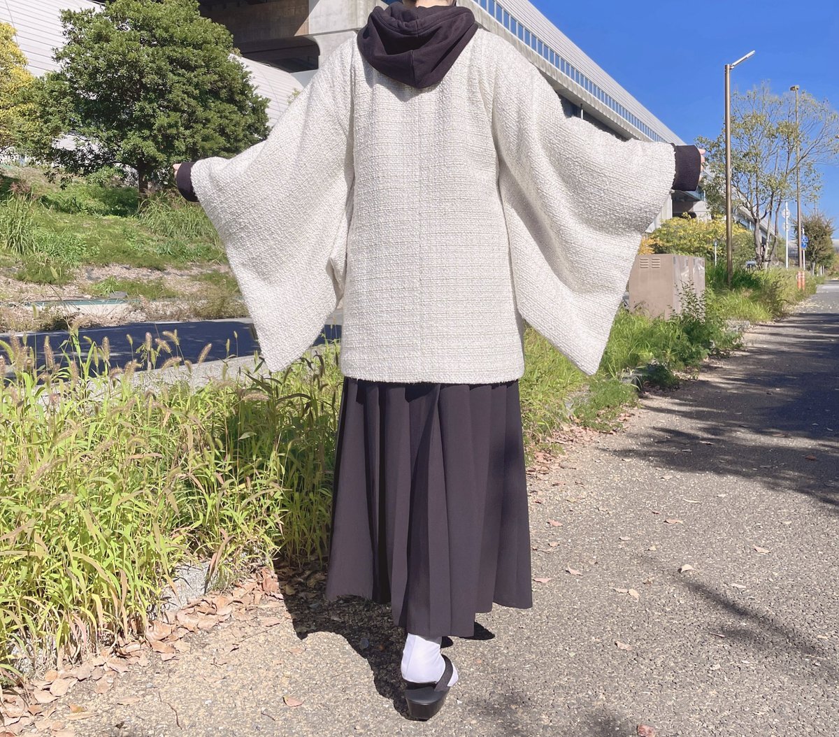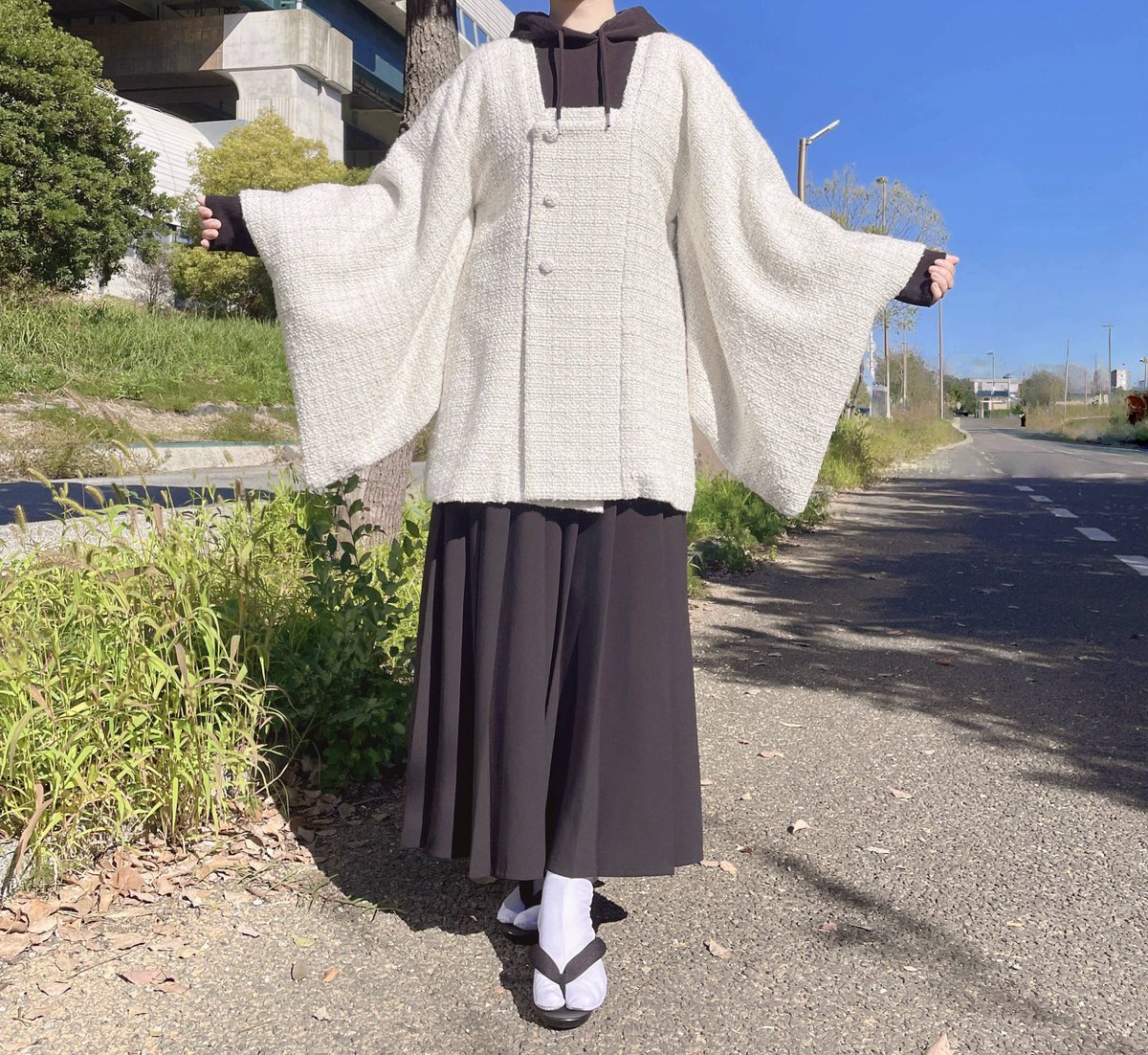 ツイード道行コート×パーカーで簡単和洋折衷コーデ。現代的な和のスタイルが楽しい! pic.x.com/sfJf2Sdszp