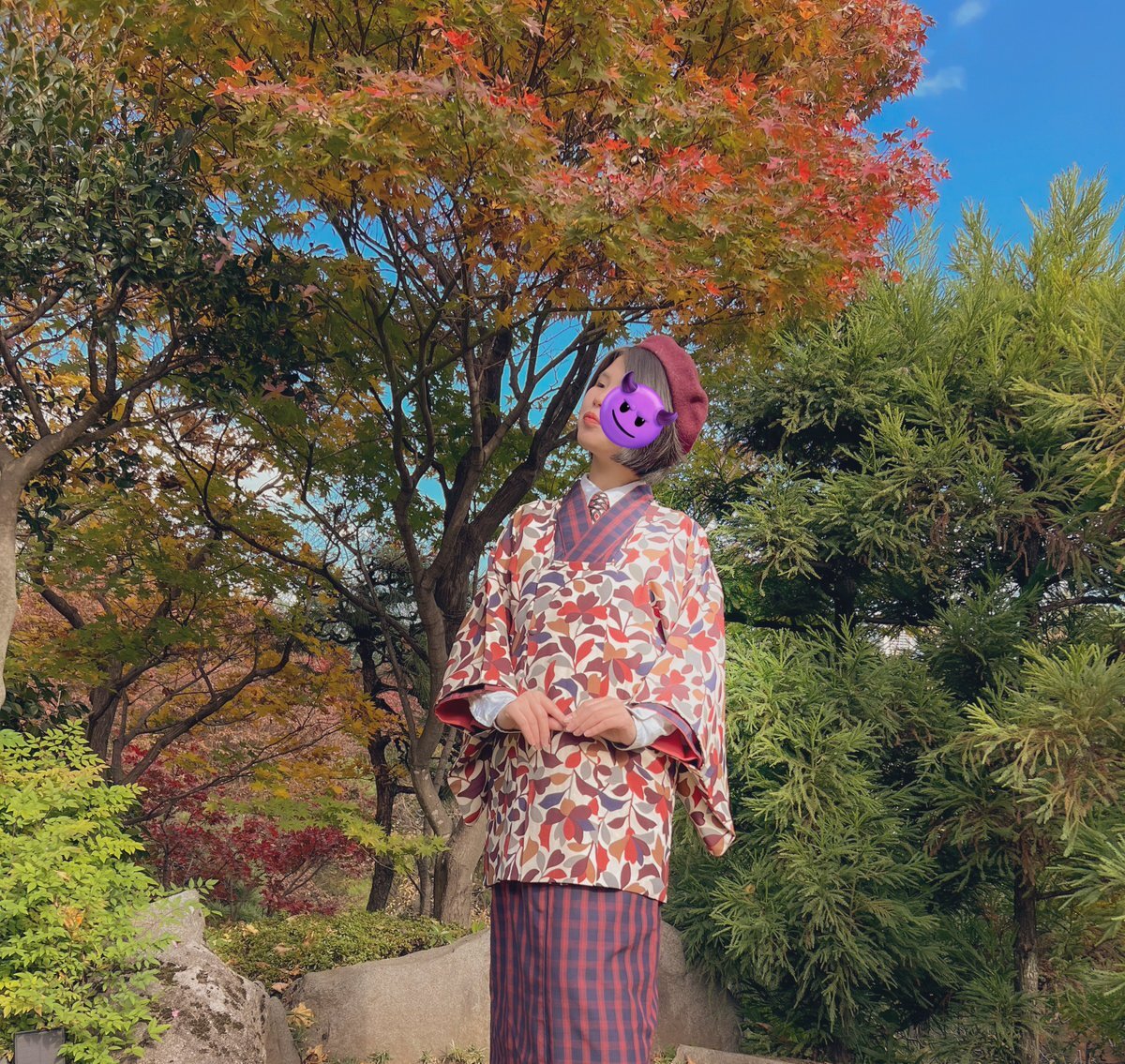 【ちょっと秋めいた格好がしたかった🍁】 #もあまるの装い 今日はとある目的のために、目白庭園へ🤭 紅葉が綺麗で、とても秋を感じられる場所だった✨ #着物 #着物コーデ #普段着物 #和洋折衷コーデ pic.x.com/gbnJnpXjC9