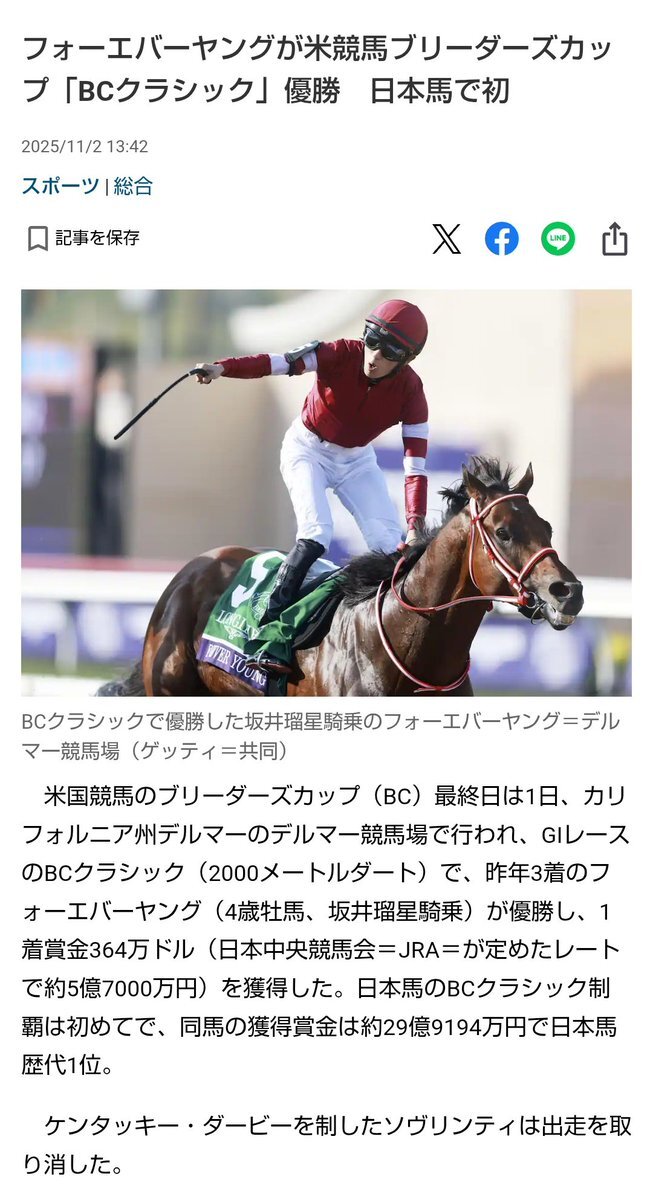 『ウマ娘』コナミとの特許権侵害訴訟における和解成立の件で、特別損失として7億2700万を計上。2025年9月期のサイバーエージェント決算短信で明らかに news.yahoo.co.jp/articles/a6915… フォーエバーヤングのブリーダーズカップ・クラシックの1着賞金が約5億7000万だから まあ余裕やな!w pic.x.com/PinKHlUnZR