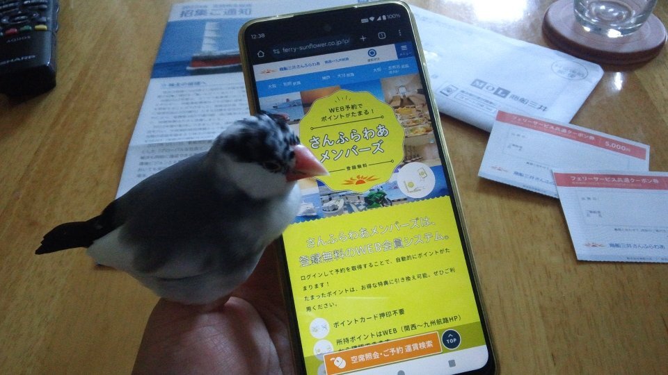 さんふらわあメンバーズ 4000ポイントとクーポン券で 大阪〜志布志スイート2人2000円に… 4900ポイント貯まるて どんだけさんふらわあ乗ってんねんて話 #商船三井さんふらわあ #さんふらわあ #文鳥 pic.x.com/jeL9R0wF9t