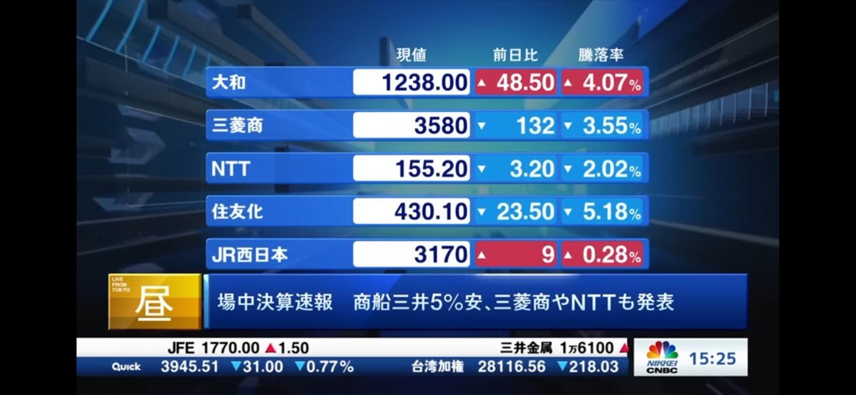 いよいよ今日から決算発表ラッシュが始まります。本日の持ち株の決算は下記6銘柄となっています。 丸紅 三菱商事 商船三井 上新電機 アイホン NTT 特に期初予想を超低く見積もっている商船三井の増配に期待したいです。私の「高配当株四天王」三菱商事の決算にも大注目です!!
