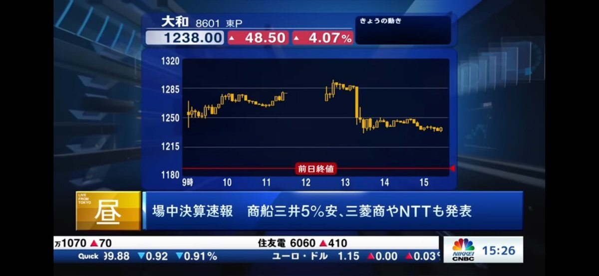 本日主要決算発表銘柄 8002丸紅 8601大和証券G 9104商船三井 4005住友化学 8058三菱商事 9432NTT 7205日野自動車 2222寿スピリッツ 4689LINEヤフー 7651ヤマハ 7974任天堂 9021JR西日本 .6644大崎電気工業 2282日本ハム 6806ヒロセ電機 おはようございます。