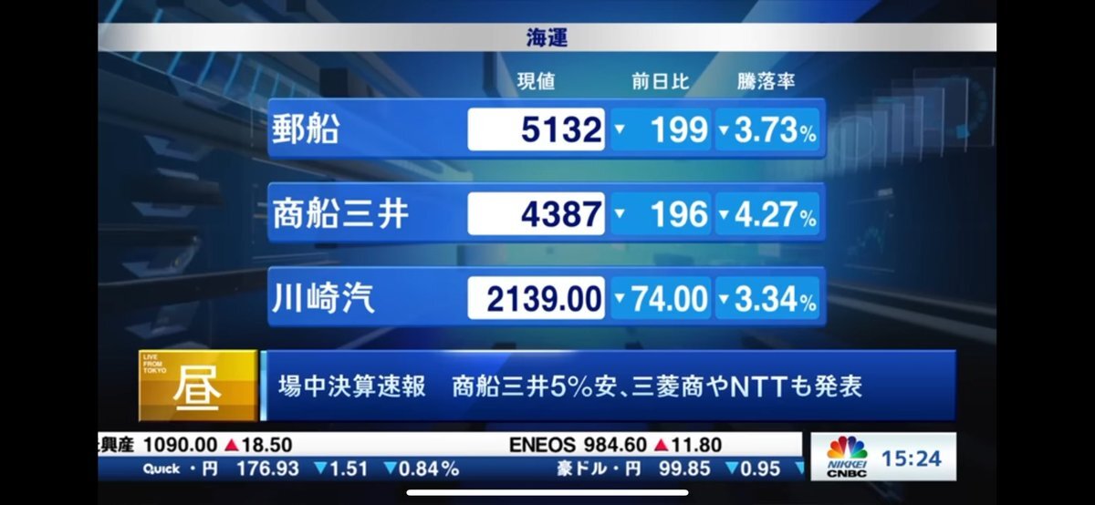 【決算発表速報】 11/4 12:00 商船三井(9104)の決算発表がありました。 皆様、いかがでしたか?感想を待ってます。 場中ですので株価が大きく動きます。 かなり割安株でお買い得ですね ホルダーの皆様は、いいねポチを👍 #決算発表 #商船三井 #投資家さんと繋がりたい