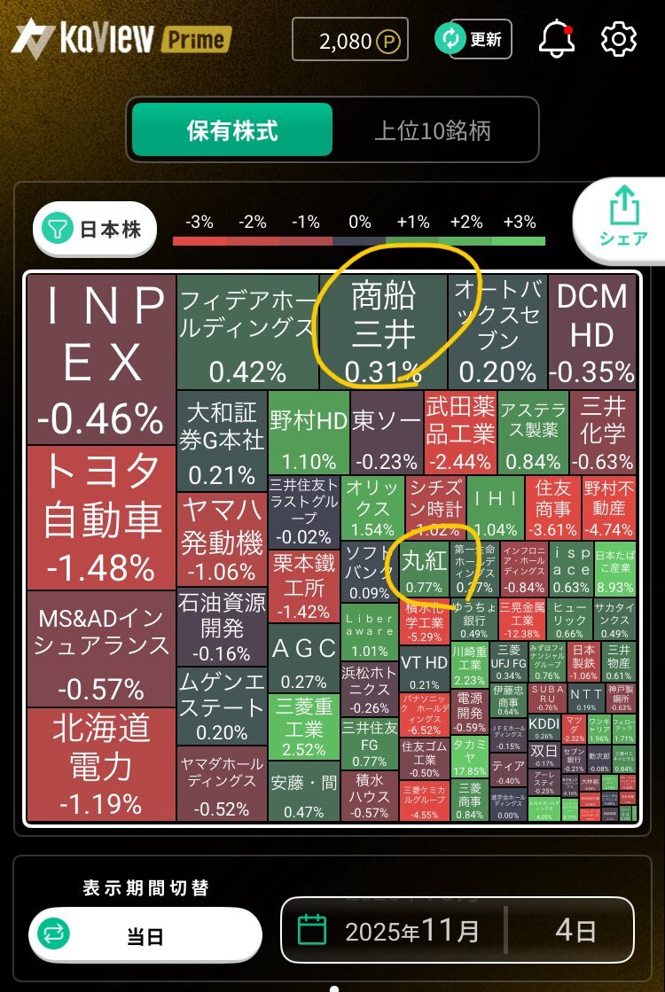 ランニングなう。今日は決算発表後の値動きを追う一日となりました。 持ち株では月島、高速、マネックスの好決算良き✨KDDIも良きでした。東急建設は先週売った分買い。 先週は商船三井で被弾しましたが、放置予定。 たい焼き食べたのでも少し走ります! 皆さまお疲れさまです! pic.x.com/z7Gmbum8eM