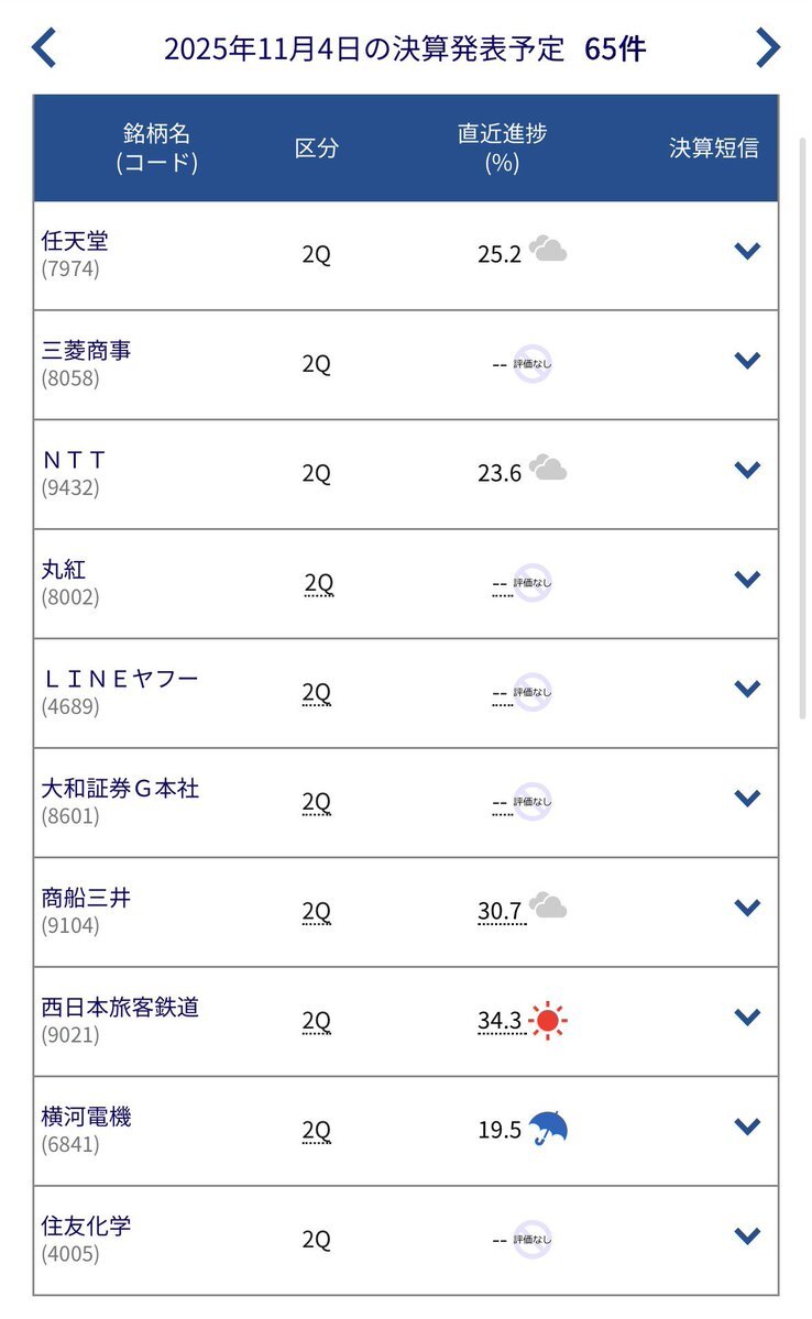 本日の決算発表予定は65社 • 任天堂 (7974) • 三菱商事 (8058) • NTT (9432) • 丸紅 (8002) • LINEヤフー (4689) • 大和証券G本社 (8601) • 商船三井 (9104) • 西日本旅客鉄道 (9021) • 横河電機 (6841) • 住友化学 (4005) など pic.x.com/gKso9RnU50