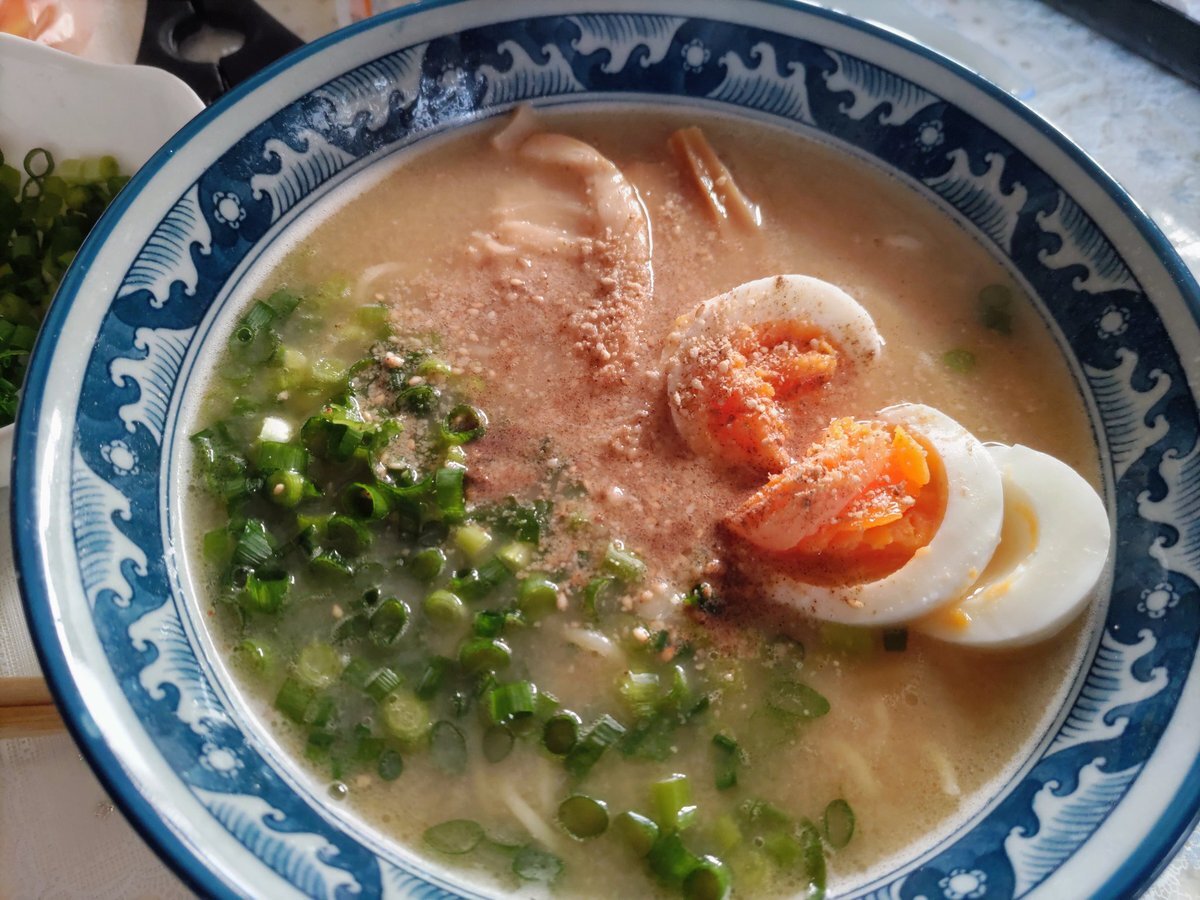 昨夜のTVを見て食べたくなりましたが、ちょっと遠いので… トッピングはネギ、メンマ、ゆで卵、すりゴマ、勿論コショウはバシ掛けで🖖 #SUGIZO #天下一品 #噂のお客様 pic.x.com/gPTLU1LHWr