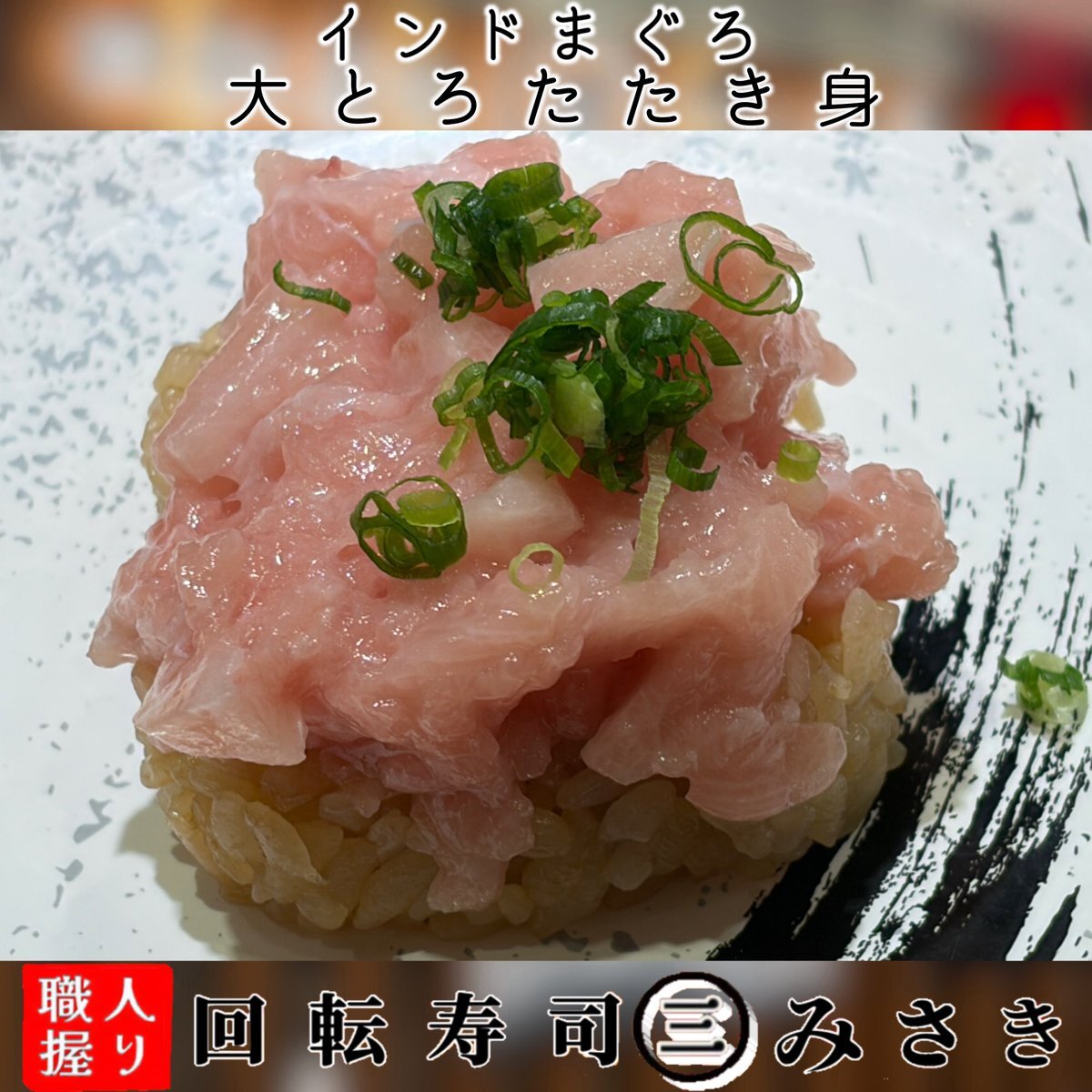 【インスタ投稿で使用したお写真になりま す】 〔インドまぐろ 大とろたたき身〕 @kaisen_misakiko 回転寿司みさき様 創業28周年おめでとうございます! ⚠️企業案件ではごさいません 店舗従業員様に、インスタ投稿したいことをお伝えてしております。 pic.x.com/johThUWHlI x.com/mizomicchan/st…