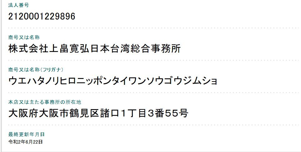 きれいな岡秀昭(小邑健二)@okahide_kirei の名前で検索をするとある会社が引っかかります。 代表の名前も同じです。 記載の所在地を国税庁法人番号公表サイト で調べるとその会社は出てこないですが、同住所に8件程の会社が存在していました。 (続く)