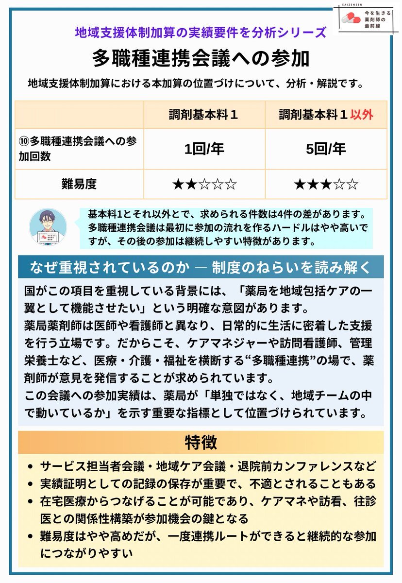 ✅地域支援体制加算の実績要件を分析💡 今回は第10弾! トリを飾るのは「多職種連携会議」✨ 代表的なのは、 ・地域ケア会議 ・サービス担当者会議 ・退院時カンファレンス の3種類ですね📝 まさに地域の医療・介護への連携に直結した実績です。 "自然に呼ばれる関係作り"が重要ですね💪 pic.x.com/1vBVJSEmkS