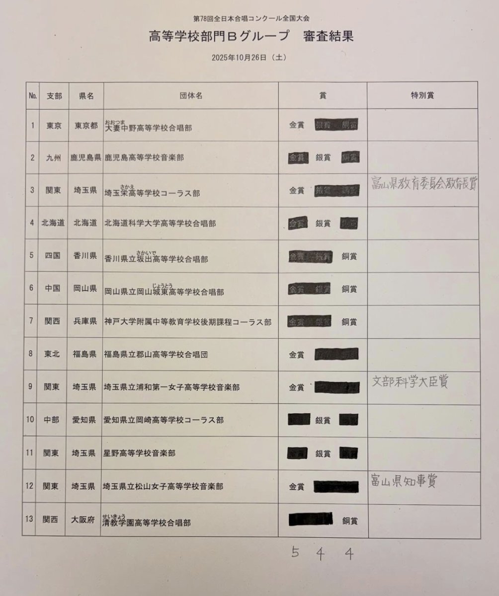 多大なる御支援と沢山の応援を頂きありがとうございました😊埼玉栄高等学校コーラス部は第78回全日本合唱コンクール全国大会で金賞・富山県教育委員会教育長賞を受賞できました。精一杯の練習で最高の演奏を目指すことができました。応援して頂いた全ての皆様、ありがとうございました😊 pic.x.com/RGV3WbbUPY