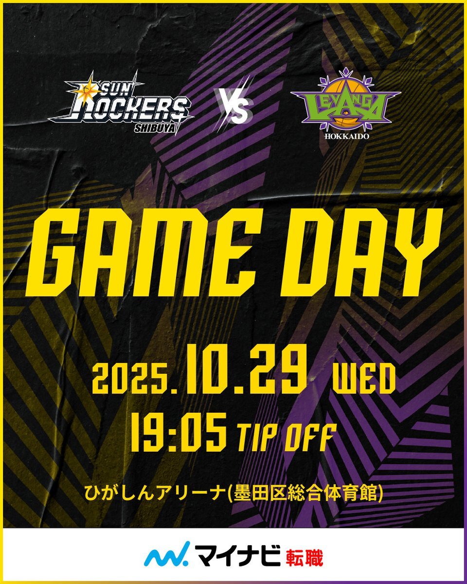 GAME DAY‼️ B.LEAGUE 2025-26シーズン 第6節 🗓2025.10.29(wed) ⏰19:05 🆚 レバンガ北海道 📍ひがしんアリーナ(墨田区総合体育館) 📡basketball.mb.softbank.jp/lives/504850/?… #サンロッカーズ渋谷 #Bリーグ #りそなグループ