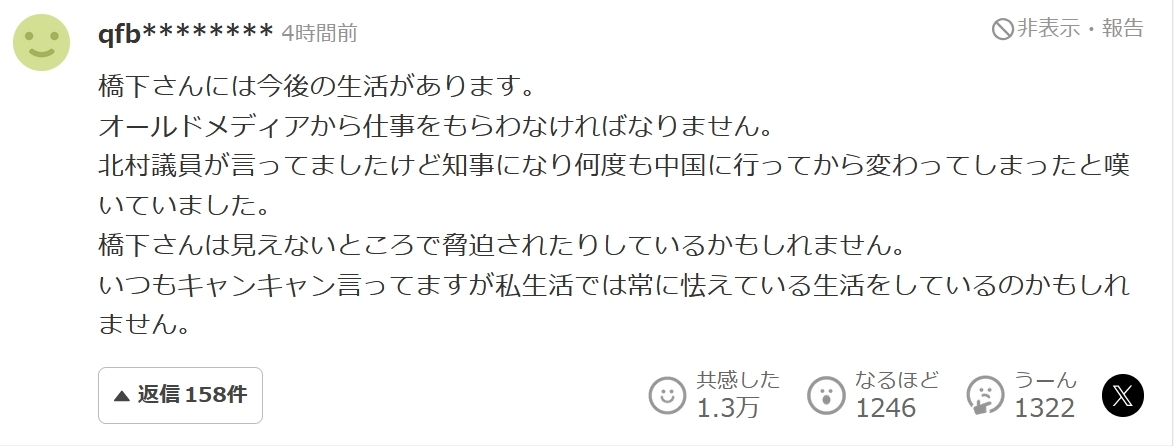 橋下徹氏「日本の完敗」 台湾有事答弁めぐる外務省局長訪中で指摘「中国に怒られてご説明に伺った日本と見られる」news.yahoo.co.jp/articles/2493e… 地獄のヤフコメ1位。 pic.x.com/J8RNoMXTyE