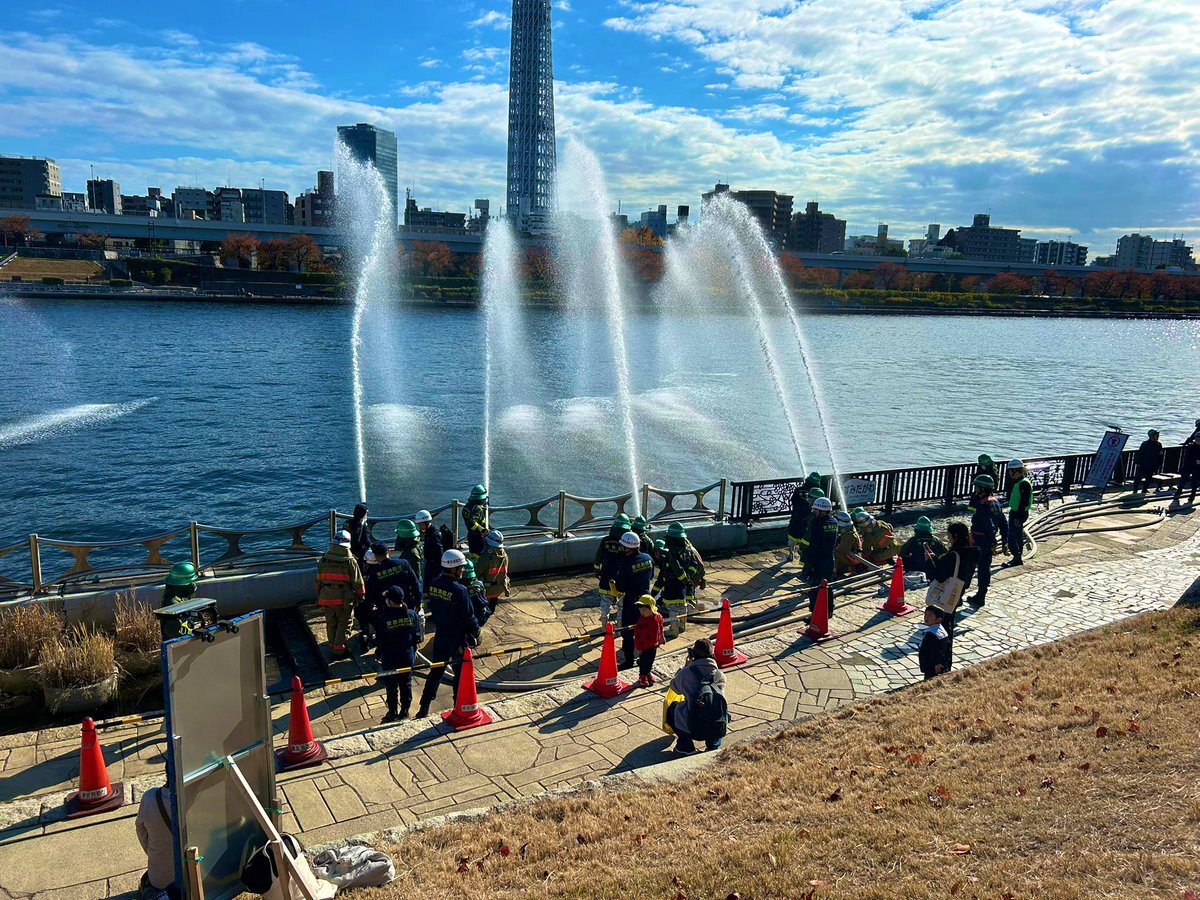 日本堤消防団の放水訓練。隅田川の水を活用しての訓練で、若手団員、消防署員、地域の方が中心に放水されました。さらに親子体験も実施され多くの方が参加されました。大分市の大規模火災も意識しての訓練となり、張り詰めた雰囲気でした。 pic.x.com/ac3pFCb2Ur