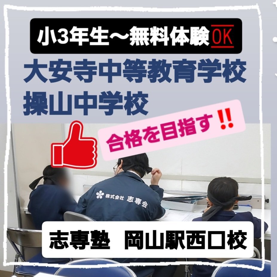 【志専塾】目指せ‼️大安寺中等教育学校合格❗️県立中学入試対策あり。小学4年生~6年生対象個別指導塾。11月から小学3年生さんの無料体験受付開始👍お問い合わせはホームページで。 studykids-okayama.com/shisenjuku #岡山塾 #中学受験 #小学生 #志専塾 pic.x.com/wmzw2ENIQr