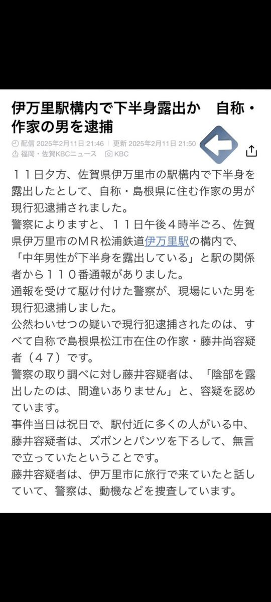もはや事件がミステリーぺに💦 【速報】自称・ミステリー作家を緊急逮捕 兵庫県の城崎温泉にて 女性用浴場で全裸姿で見つかる #ldnews news.livedoor.com/article/detail…