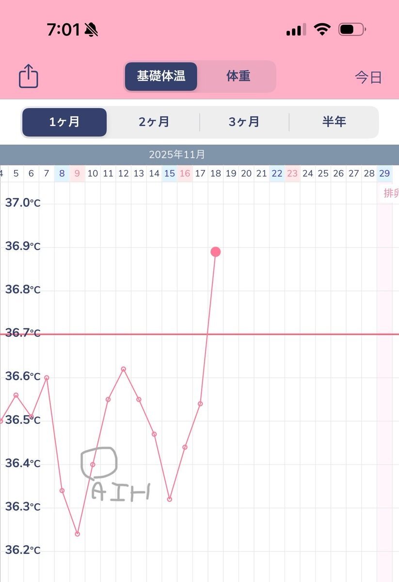 【AIH①9日目】 D22 36.89 ここに来て初めての高温に驚き、今まで我慢してた(想像)妊娠初期症状が爆発(毎週期あり) ・下腹部生理痛のような鈍痛(気のせいレベル) ・太ももの付け根に血行不良のような違和感(気のせいレベル) ・炊飯器の匂い→食欲増進(おい) また想像妊娠始まっちまった.. pic.x.com/8OmHHhmCLL