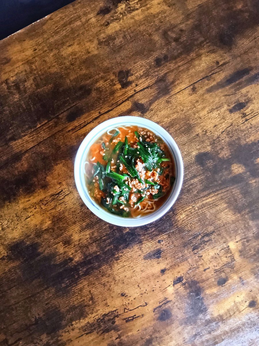 10/24(金)雲・昼 🍜・㈱アイランド食品銘店伝説 娘娘上尾井戸木店 ※麺・液体スープ・餡の素 ・🐖挽50g ・🌿韮 ・胡椒 ↑塩分8.2g 朝昼塩分10.016…g ↓ pic.x.com/lUj79O4iOB
