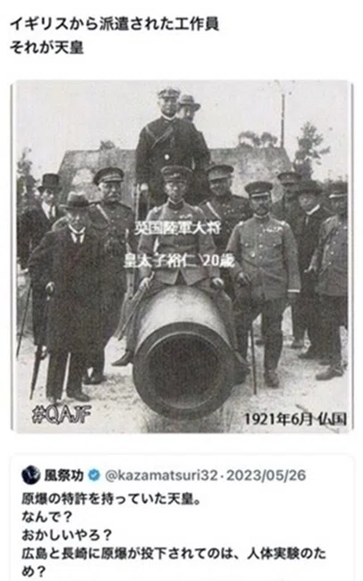 返信先:@DrXzrac1Xacchjg明治天皇は出雲大社の子孫でも何でもありません。 南朝を乗っ取った李家(李氏朝鮮)である長州の田布施出身の大室寅之祐です。 また、昭和天皇は元々北朝の家系でしたが、CIA英国のエージェント(スパイ)であり、英国陸軍元帥です。 海軍に命じ、日本で原爆を爆破させた張本人です。