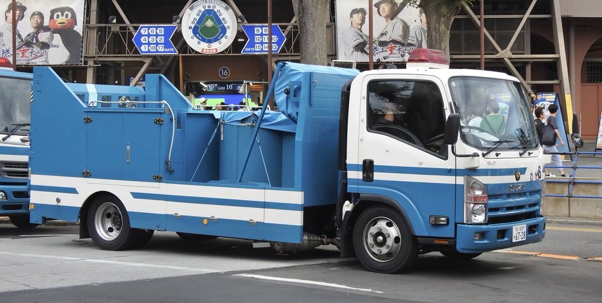 2013年度に国費配備された警視庁第六機動隊の先代エルフワイドキャブ爆発物処理筒車 爆発物を液体窒素で凍結させて運ぶ車両で、撮影時は東京世界陸上新国立競技場周辺警備で使用。爆発物処理筒車の出動事例は近年では安倍晋三銃撃事件発生時に奈良県警配備車が出動した事がある #金曜日の緊急自動車 pic.x.com/P8vXOAFMFh
