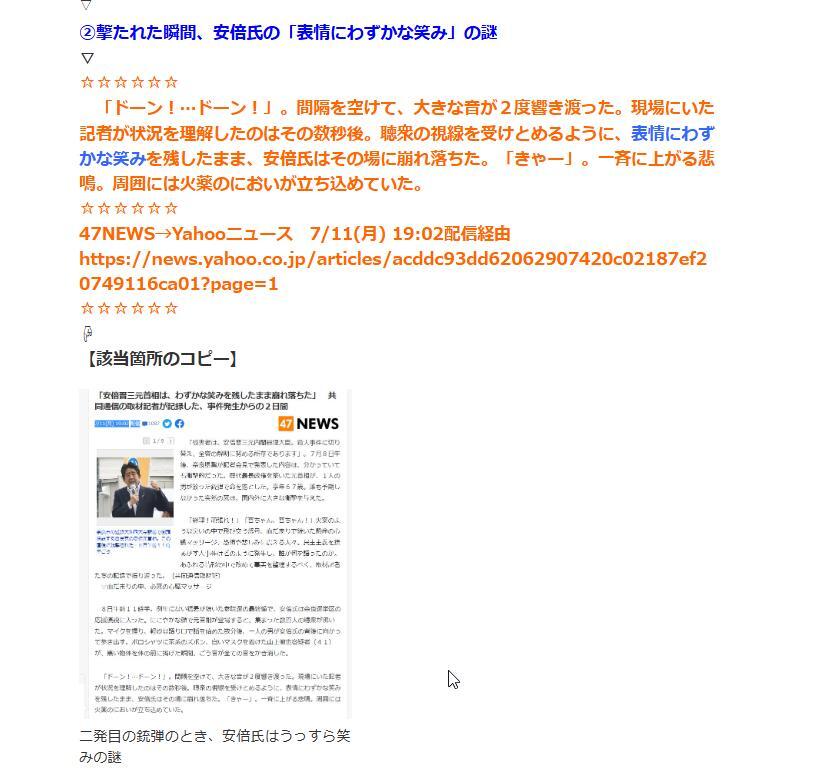 25-320-2【📷】 #安倍晋三銃撃事件 #山上徹也 #安倍晋三 🤡主張→現場の目撃者全員を法廷へ 常識である。まして二発目の銃弾が不明 ▽ 🤡への各種情報提供→ #安倍晋三は生きている が🤡結論 同時に今Blog掲載中の Z3茶番死亡劇との類似が ▽ 25-319-2を #孫崎享 @magosaki_ukeru 氏の下記に投稿 x.com/magosaki_ukeru…