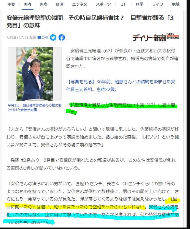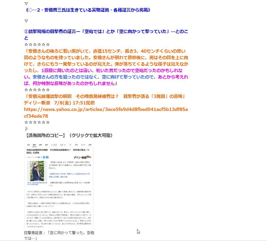 25-319-2 【#安倍晋三】 #安倍晋三銃撃事件 「銃撃現場の目撃者の証言ー「空砲では」とか「空に向かって撃っていた」…とのこと」 目撃者全員を裁判所に 🤡が幾つか証拠持参出廷させよ ☟ 🤡Blog掲載 🎌FixerME・Part 6・2022年8月(その3)安倍晋三は生きてる(証拠開示) hamatakachan.uh-oh.jp/?p=36837 pic.x.com/vg96CQynwf