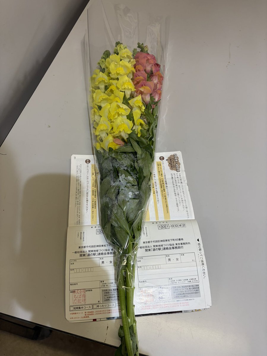 関東の道の駅完全制覇して職員に花もらったのわたしくらいだろうな。 おおつの里のスタッフの粋な計らいに感謝しかありません。 pic.x.com/TqsQ04eqWr