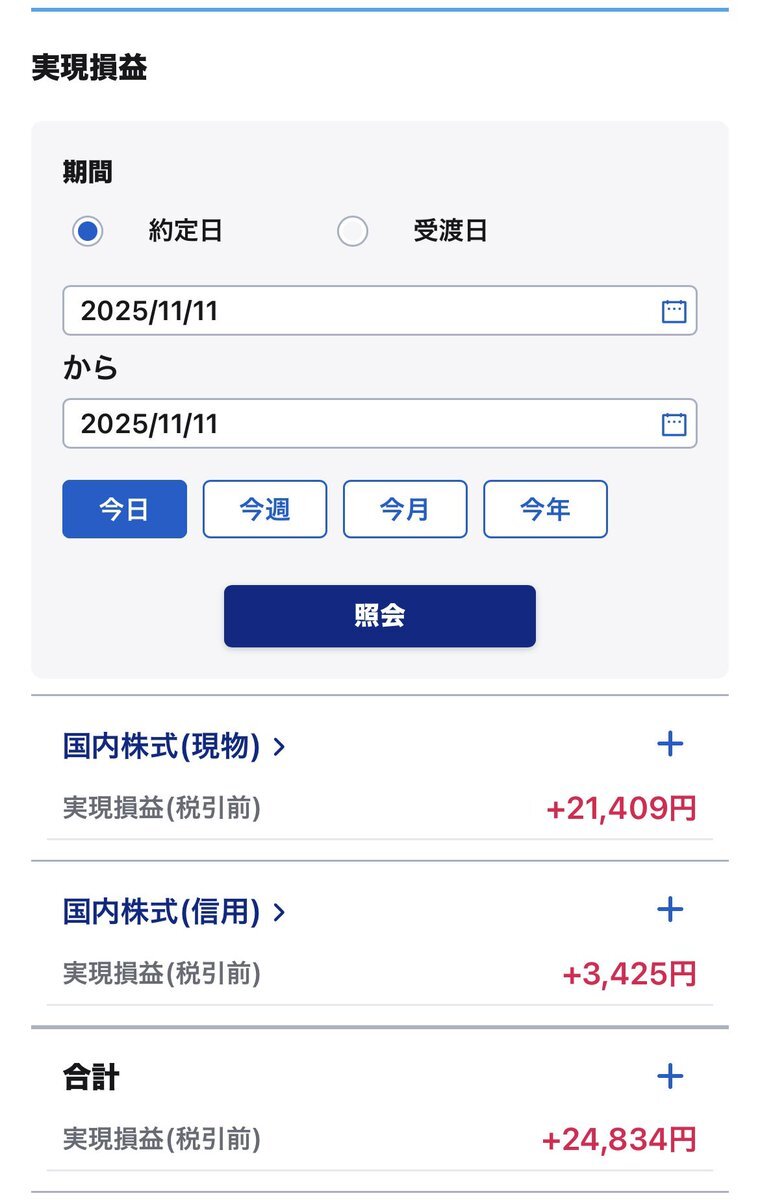 📊【本日のトレード結果】 2025年11月11日(火) 実現損益:+24,834円(税引前) ・現物:+21,409円 ・信用:+3,425円 焦らず、流れを見ながら淡々と利確。 今日の利益は小さいけれど、「リズムを崩さない」ことを最優先。 積み上げていく日々の数字が、 pic.x.com/2gjRqJAp5m