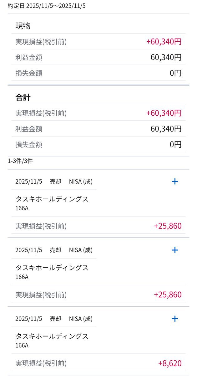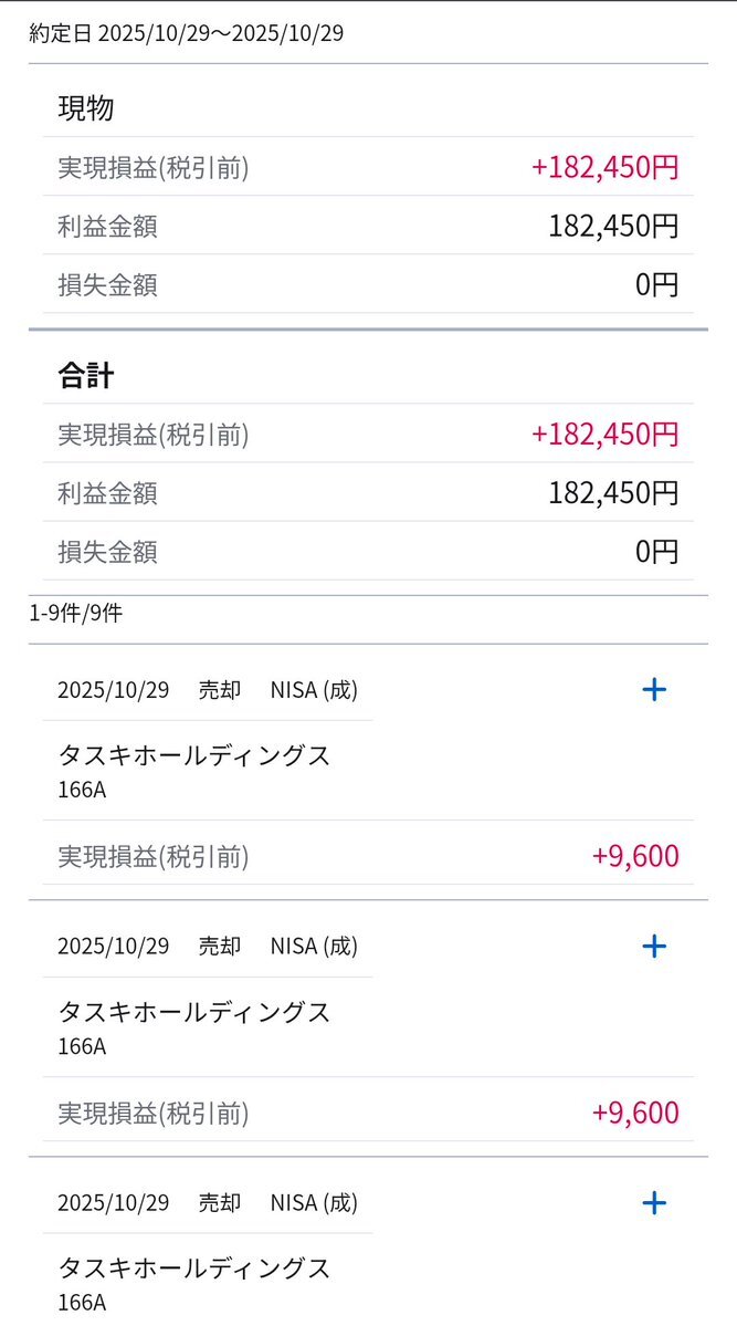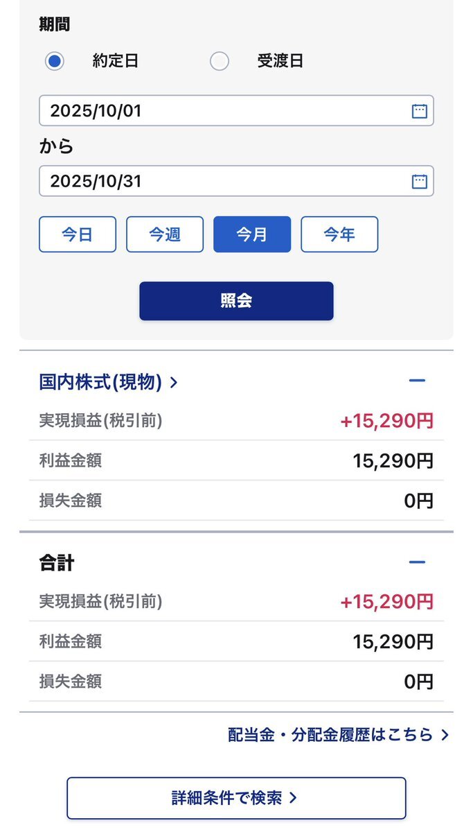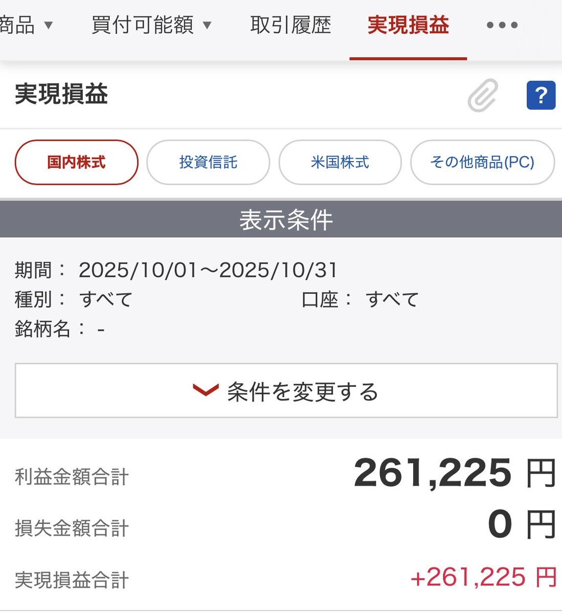 2025/10/01〜10/31 実現損益:+261,225円 配当金:0円 合計:+261,225円 ※税引前 pic.x.com/YBuP0f2Jp7