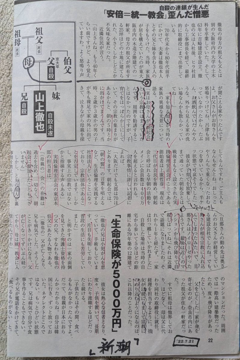 過酷な家庭環境から救いを求めて、山上母が統一教会に入る前に通っていた朝起き会(実践倫理宏正会)には50万献金していたそうですね。 x.com/masaki_kito/st…