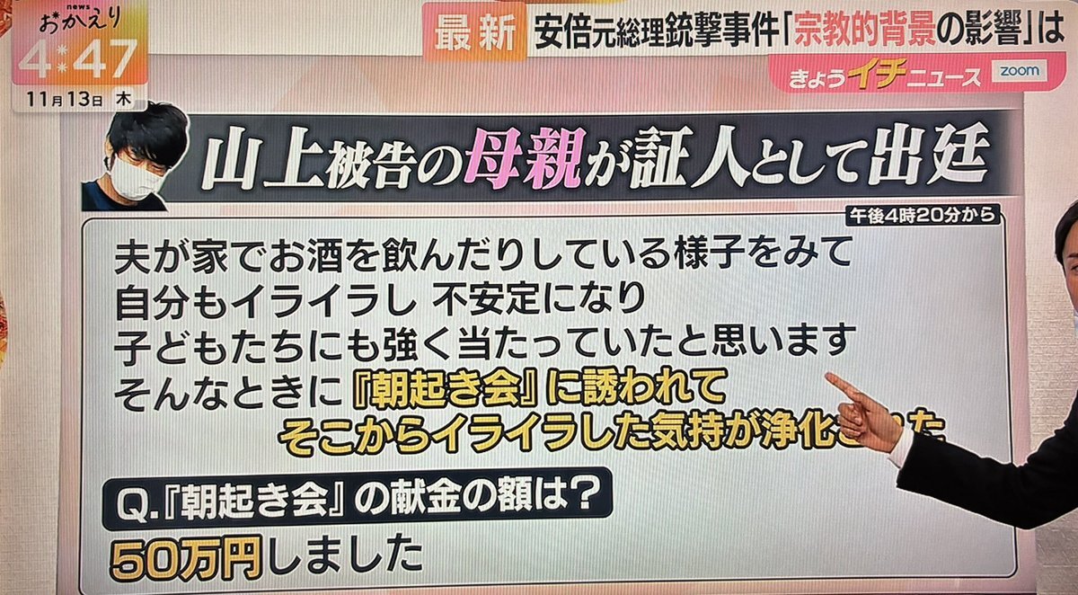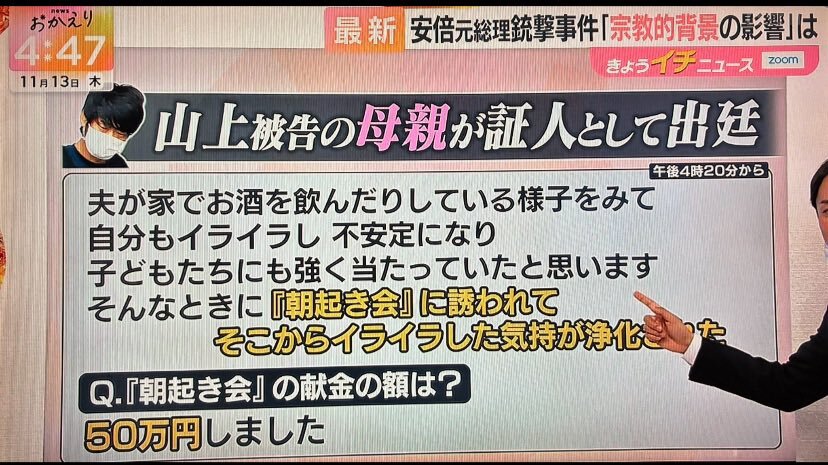 山上母は、統一教会以前には、早起き会である実践倫理宏正会にて活動していたとのことで、 その時に、父親が自殺されていたとのこと☝️ 今日の裁判で母親に弁護士から『朝の集会』で50万円献金という話があったが、こちらの宗教のことを統一教会になすりつけるのか❓という話になると思う🤔 x.com/i1jilmexio8021…