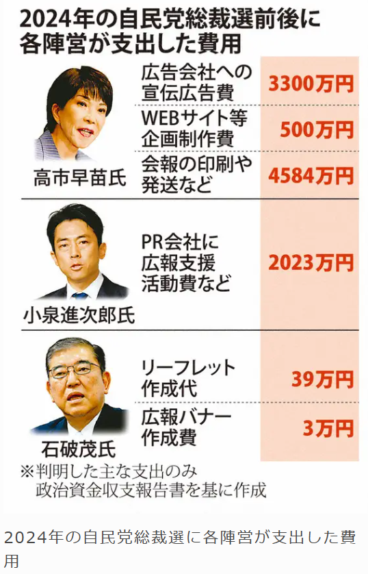 自民党総裁の座は金で買える。 #裏金自民党 #裏金自民 #犯罪政党自民党 高市氏、宣伝費に8000万円超 24年総裁選 水面下で巨費投じる mainichi.jp/articles/20251…