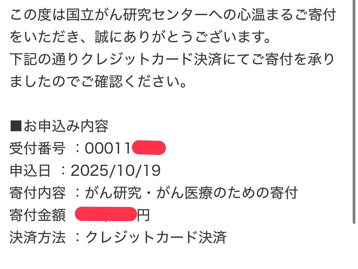小額ながら寄付した がん研究のさらなる発展を願って x.com/livedoornews/s…