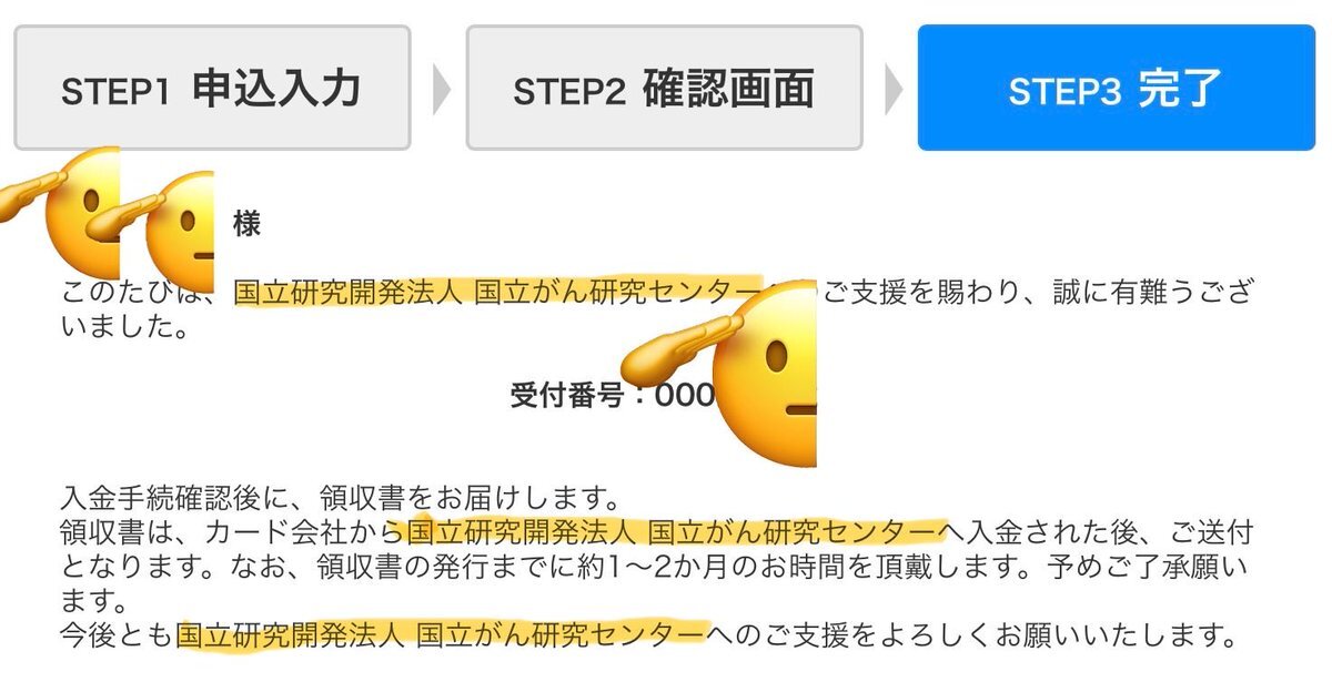 がん研究センター、確定申告とか気にしてない寄付者の方が多いと思うから、Twitterの件で寄付したと明らかな人に関しては、高額以外はTwitter有志の方々として領収書無し、あるいはゆっくりでも良いんじゃないかな〜なんて思ったり… 善意の寄付なのに処理で過度の負担になってたら意味ないかもだし…