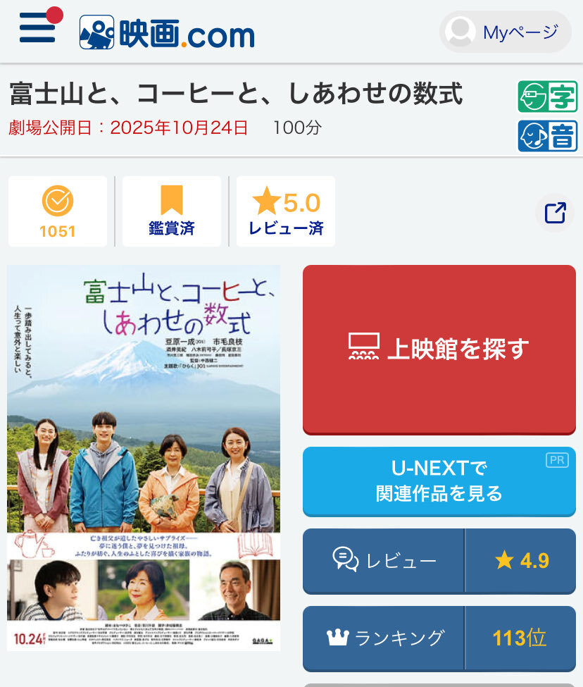 シェアからアクセスして来たよ🗻☕ 公開もうすぐだね!楽しみ #富士山とコーヒーとしあわせの数式 #ふじこーひー #豆原一成 #JO1 富士山とコーヒーとしあわせの数式 eiga.com/l/0mixG