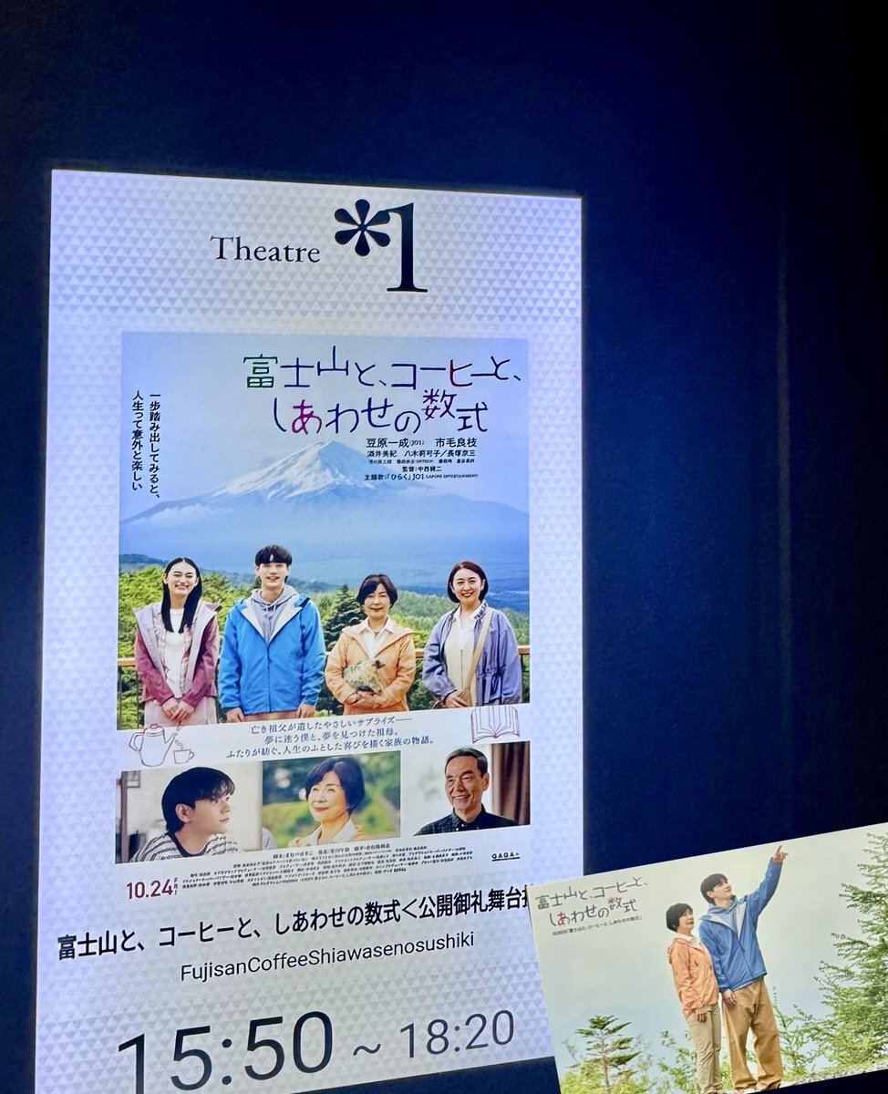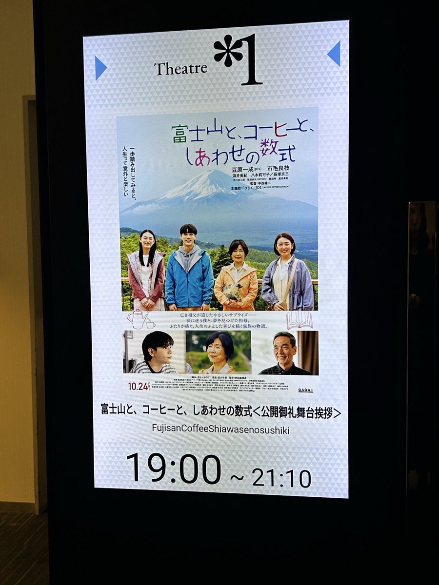 舞台挨拶。会場の温かな雰囲気の中、しあわせな時間を過ごさせていただきました。一区切りの寂しさを胸に、この作品でこ縁のあった方達とまたお仕事をご一緒できるよう頑張ろうと誓った夜でした。 ありがとうございました✨🗻☕️✨ #豆原一成 #市毛良枝 #富士山とコーヒーとしあわせの数式 x.com/mtfujimovie102…