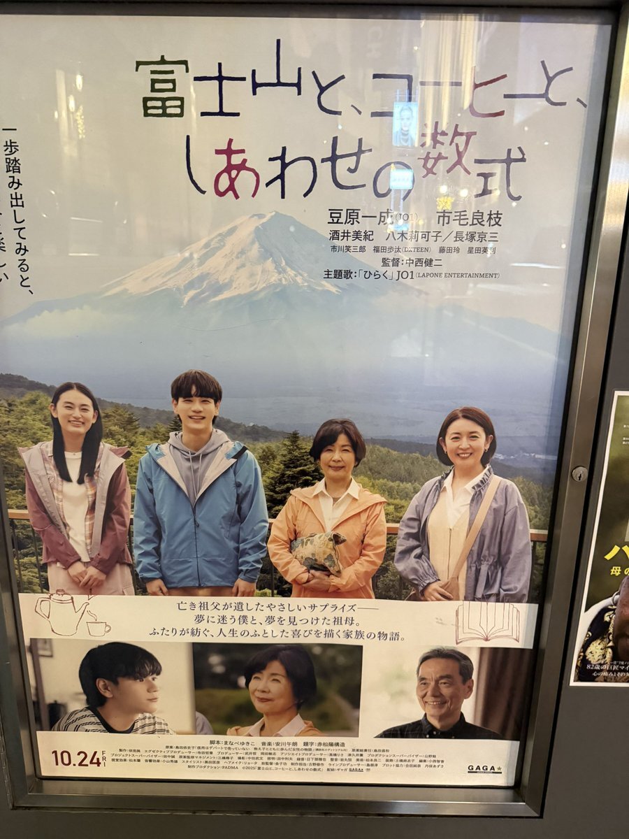 豆ちゃん出てるし、jamのままと推し活で観てきた! 自分の環境とか日々の幸せに気づく作品! 歩汰も見れて演技好きだった!!! 推し達でもあるし、映画の内容自体も刺さって本当に良かった 私自身病気もあるんだけど、前を向けるような内容だった #MtFujiMovie1024 #富士山とコーヒーと幸せの数式