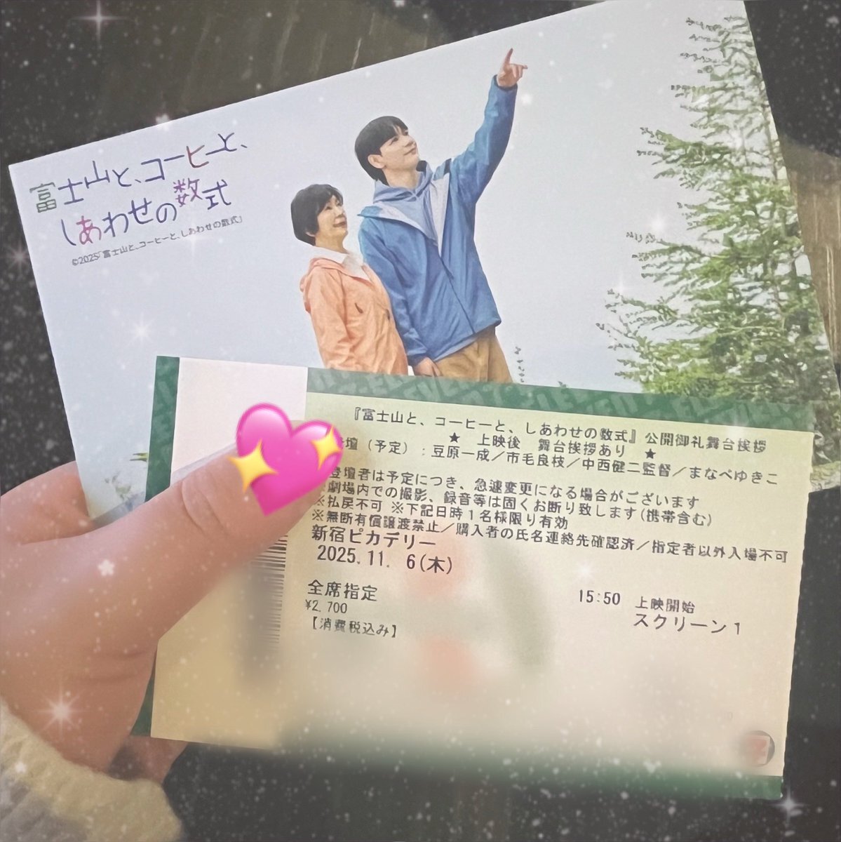 今日はふじこーひーの舞台挨拶へ☕️ ストーリーに感動し、ひらくに感動し🥹 豆ちゃんと市毛さんたちのお話も聞けて感無量です😭 とても素敵な作品に出会えました🍀 #富士山とコーヒーと幸せの数式 #ふじこーひー pic.x.com/sW3OdUisqB